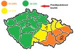 Nejmenší pravděpodobnost bouřek je dnes na západě a severozápadě Čech, největší hlavně na jihovýchodě a východě Česka.