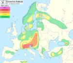 Podmínky budou velmi příhodné, hojná energie ve formě CAPE se bude postupně nasouvat od jihu s postupem dne. Hodnoty střihu větru budou kolem 14m/s a MU-CAPE až 1200J/kg.