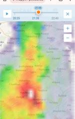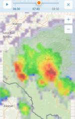 Tak tady druhé kolo, od severu se blíží bouřka od Nepomuku a tady , 1-2km západně , jihozápadně vznikla bouřka pod VO z kovadliny bouřky předchozí.. Blýská se i duní pěkně..