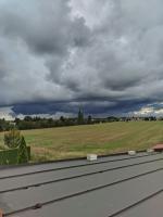 U nás to začalo být zajímavé k ránu. Nejprve jsme tu měli středně silnou přeháňku, která severně od nás přerostla v bouřku a bylo slyšet asi 10 hromů. Tohle se odehrálo tak kolem 4. hodiny ranní a bouřka tedy byla vzdálená. Další bouřka už byla přímá, ta přišla tak o hodinu později. Vzbudil mě (a nejen mě) opravdu hodně hlasitý hrom, podle blesky.bourky.cz blesk uhodil 0,1 km od nás a i když je celkem těžké této stránce věřit, tentokrát to podle mě bude pravda. Jedná se tak patrně o nejbližší blesk k nám v tomto roce. Z nebezpečných doprovodných jevů tu byl jen přívalový déšť, blesky nebo záblesky byly zhruba 2-3 za minutu a hromy byly opravdu hlasité. Bouřka ale přešla poměrně rychle.