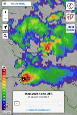 Nás odpoledne podle radaru ještě něco přecházelo, ale ani kapka. A k večeru byla zase jedna taková mírná přeháňka, podobná jako ta po poledni. Dala nám 0,2 mm, takže dneska celkem 15,5 mm a v září už jsme na 76,9 mm srážek. Za víkend sice napršelo o něco méně, než se čekalo, ale to teď tolik nevadí. A v dalších dnech má zase pršet.