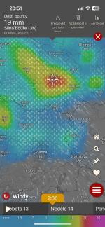 O kousek nás minul další slejvak. Jinak to tu zatím končí. Už asi nic teď nebude. Překvapuje mně že se ty bouřky netvoří, na radaru místy hodně červené fleky furt sleduju blitzortung, ale kde nic tu nic No nic šou končí a já jdu ještě spát.