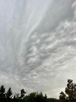 Dnes nás těsně obešly slabé bouřky; alespoň slabě zapršelo, do půl milimetru. Večer nás pak čekala skvělá podívaná na obloze, na kterou se vyplatilo si vyšlápnout zdejší kopeček Na srážkovém pásmu se totiž objevila krásná večerní duha i oranžová mammata. Červánky pak byly na celé obloze...