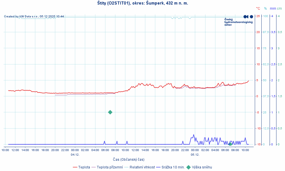 Chladných míst ubývá a teplo se postupně dostává i do míst, kde ještě včera či doslova před pár hodinami ještě bylo i lehce pod nulou. Aktuálně jsou na nule např. Štíty - https://www.chmi.cz/files/portal/docs/poboc/OS/KW/... a např. včera zmiňované Hanušovice. Některé stanice poblíž už ale částečný profuk také dostávají, viz - https://www.chmi.cz/files/portal/docs/poboc/OS/KW/...