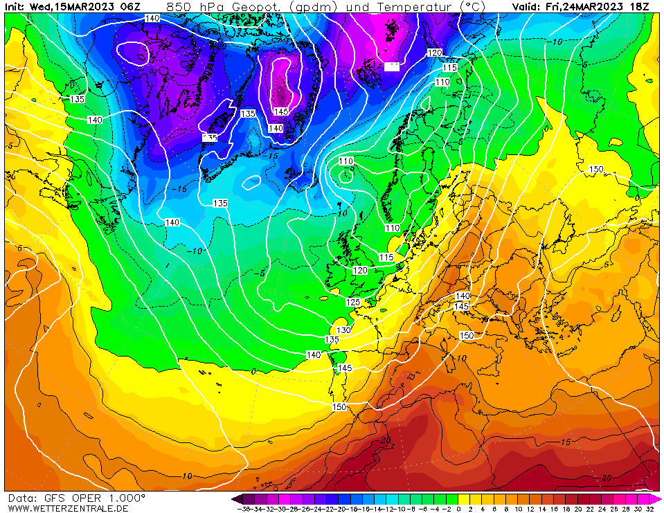 A pak nastává zajímavá situace na konci prac. týdne. GFS si na polovinu dalšího týdne poněkud "zvýrazňuje" sílu TV nad JZ středomořím, která by pak měla přes JZ Evropu pumpovat do střední Evropy teplou vzduchovou hmotu (v hladině 850hPa teploty až kolem +12°C). V nížinách tak modeluje maxima v rozmezí 17-21°C. Naopak Ecák si spíše tuto TV poněkud straní více k JZ a tak její vliv by byl slabší, ale maxima nad +15°C by měla být dosažena. Pak je ten výhled dosti rozdílný.