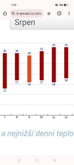 Vcera 12.08.2024 bylo uz i v CR velmi teplo. Noc 11-12.08.2024 jeste tropicka nebyla, noc 12-13.08.2024 uz ano. Odpoledne 12.08.2024 se vyskytovaly teploty nad +30 i vyrazne, na par mistech i nad +35 °C, ale to slo nejspise o chybu mereni. Dneska 13. srpna budou teploty jeste vyssi.
