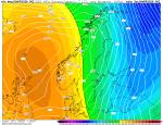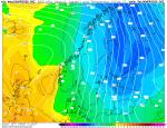 Tlakové pole s hladinou 500 hPa, ať jsou ty mapy kompletní. Hlavně v pátek ráno na severu Skanidávie extrémě silný vítr a velmi silné ochlazení, Blizzard. Za dva dny pronikne ten nejchladnější vzduch do ČR. Základ map je GFS 02.04.2025 00 UTC.