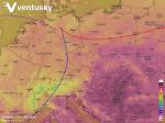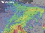 Tlaková níže by v Polsku měla dále zesilovat a mohla by zde být doprovázena i silným větrem (až 100 km/h), bez bouřek.