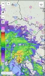 Nás už teď přecházel takový zvláštní shluk přeháněk, většinou spíše jen tak pokapávalo nebo mrholilo, ale několikrát to zesílilo až na silnou intenzitu, ovšem jen na několik sekund. Co jsem si tak stihl všimnout z okna, tak směrem k centru pršelo víc. Dalo nám to 1,3 mm srážek. Další déšť čekám nejpozději večer.