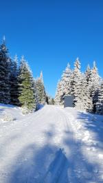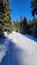 Kalek je poměrně nízko. Tudy jezdím v létě na kole. Na běžkách se vydávám spíše západním směrem. 8km západně na Mědědec dám i teď s přehledem na Áčkových běžkách. Pak až nad horní Halži je běžkařsky mrtvá oblast. Ale dàle na západ za Meluzínou už je zimní ráj. Foto z úterka. Upravené stopy s dostatkem sněhu....