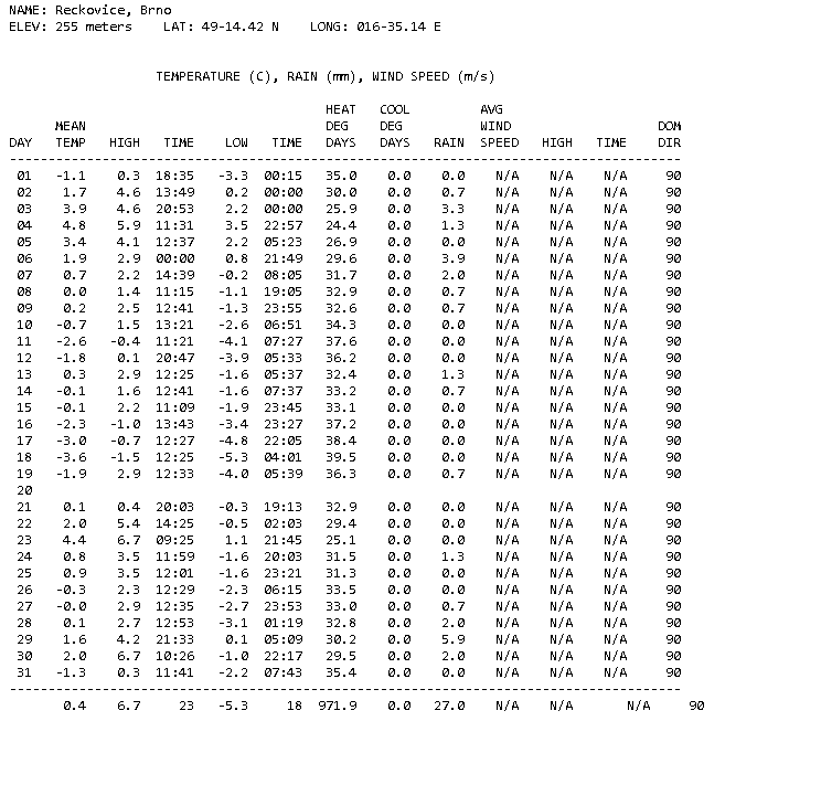 Jinak za leden to v podobných nadmořských výškách v okrese Třebíč je +- 30 mm. Sucho v listopadu a prosinci moc nevadilo, zajímá mě to od půlky dubna do půlky června, pak už to uzalejvám a v červenci sklizeň.