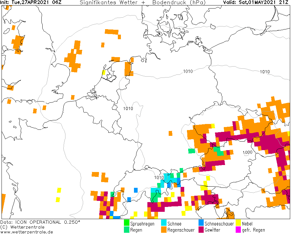 Tak i ČHMÚ tam má bouřky a dokonce místy. Nejdříve v té vlně v noci na pátek, a pak v sobotu a v neděli. Ta TN bude krásně tlačit teplý a vlhký vzduch, takže na JM by mohlo být až 20°C a právě zde by v sobotu mohlo slušně zabouřit.