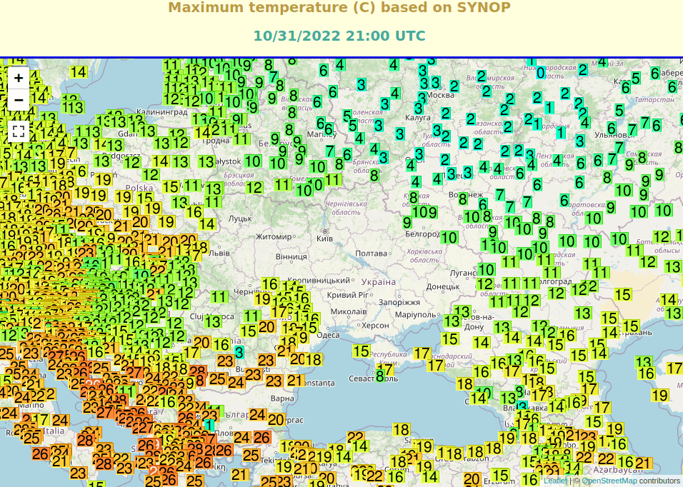 Uz od zacatku valky na vychode ukrajiny nesly stanice. Ale od 19.10.2022 nahle prestaly fungovat temer veskere Ukrajinske SYNOP stanice, funguje jen par stanic na Krymu. A tak tomu je dodnes. V okolnich zemich, byt kousek od hranic s Ukrajinou, data ze stanic jsou.
