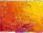 GFS 22.06.2025 12 UTC +6 hod na 18 UTC - velmi teplo v západní Evropě, odchylka T850 od normálu 1991-2020 i nad +12 °C. U nás v ČR také velmi teplo a na mnoha místech tropický den.