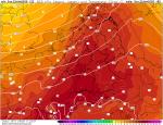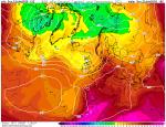 Ve Francii a ve Španělsku i v západním Středomoří bylo velmi teplo a ve Francii-Británii-Nozozemí teplota v 850 hPa výrazně nad normálem. V severo-východní Evropě pak byla teplota naopak výrazně pod normálem, i -12 °C odchylka od normálu a v 850 hPa i pod -5 °C vč. severu Skandinávie. To znamená možný výskyt sněžení.