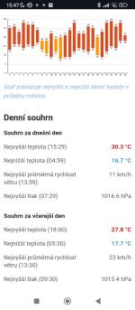 AKTUÁLNÍ INFORMACE: Stav: polojasno; teplota: 29,5 °C; vlhkost: 42 %; vítr: SZ 4 m/s; tlak: 1018 hPa.