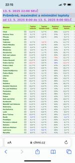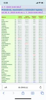 V Sudoměřicích (meteotom.cz) byl první tropický den letos až 23.06.2025 a druhý 25.06.2025, i když už 03.05.2025 Tmax +29.7 °C. Těch 5 tropických dnů na mapě CHMI, jsou to Dobřichovice ? Podle polohy to tak vypadá.