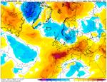 V Evropě odchylka teploty v 850 hPa od normálu 1991-2020 ve 3 nejteplejších dnech Francie a ŠPanělska. Aby bylo vše kompatibilní, tak ponechávám běh ze včera 12 UTC, zachycující od začátku vlnu veder ve Španělsku. Oblast odchylky T850 od normálu více něž +12 °C je obrovská.