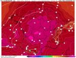 Ještě jeden čas a mapy z této předpovědi - v době kdy odchylka teploty v 850 hPa od normálu více než +12 °C zasáhla v Evropě největší plochu, 12-13.08.2025, a to převážně nad Francií. Velmi teplo ale bude i v Anglii, Beneluxu, části Německa a v dalších dnech i ve střední Evropě. Mapa tedy GFS 08.08.2025 12 UTC +109 hod na 13.08.2025 01 UTC. Je to v noci a proto teplota v 850 hPa spíše nižší.