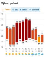 Já to beru z meteorologické stanice Jirkov a z našich meteostanic. Blbý je že meteostanice Jirkov hned zaokrouhluje nahoru i když bylo třeba 29,5 nebo 29,6 hned to píše 30 °C a to je chyba