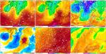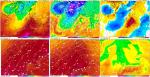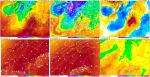 Situace dnes o půlnoci GFS 19.09.2025 12 UTC +12 hod, kdy bude možná největší oblast odchyky T850 od normálu více než +12 °C. Na mapách je teplota-geopotenciál, ThetaE a odchylka teploty od normálu v Evropě a Střední Evropě + teplota-geopotenciál v 850 hPa ve Francii.