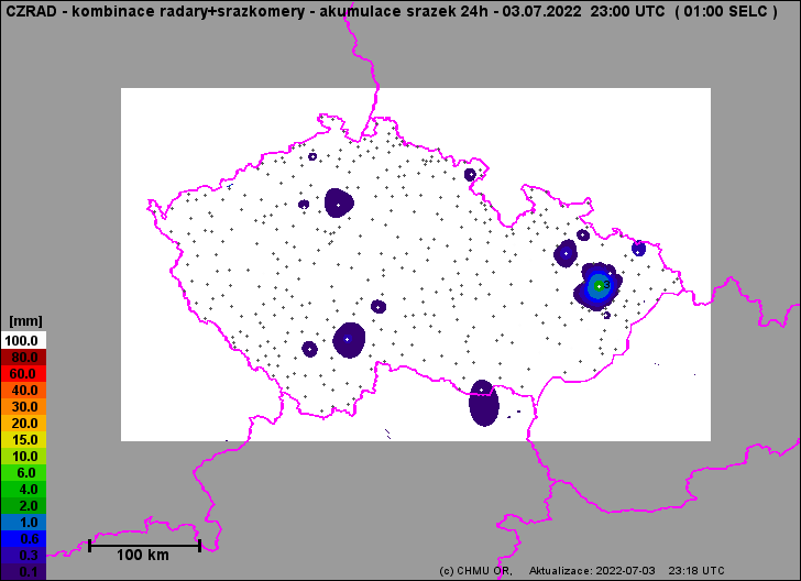 Srazky radar+stanice 03.07.2022 00-24 SEC (23-23 UTC)