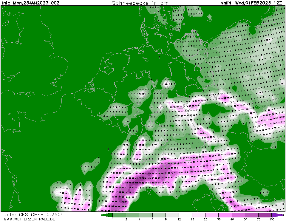 Na horách sníh teda přibývat bude ale v nížinách toť otázka může to být klidně jak minulý rok takhle na začátku února, na horách pomalu rekordní výška sněhu a v nížinách částo ani cm; modely mi dělají starost s postupným zvyšováním teplot a ubýváním srážek, teď tam má GFS na 1.2 sněhovou pokrývku jen od 400 m výš teplotu ve výšce má kolísavou -3 až -7 to by znamenalo při takhle čerstvém proudění z Norského moře bohužel v nížinách střídavé aprílové počasí; něco jak minulý rok v únoru