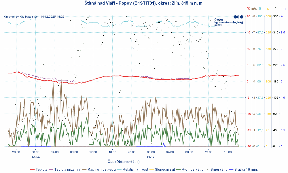 Zajímavá je např. lokalita Štítná nad Vláří na JV us SK hranic. Dle webkamery se tam oblačnost během odpoledne protrhala a teplota na večer a noc zatím sletěla až na aktuálních -4 C. Pokud slunečno bude zítra, ráno sice mráz, ale poté to poletí někde +5 až +6C (teplý sektor je velmi blízko JV hranic) - https://www.chmi.cz/files/portal/docs/poboc/OS/KW/... "nedaleké" Vizovice pak aktuálně mají cca +2,1 C.
