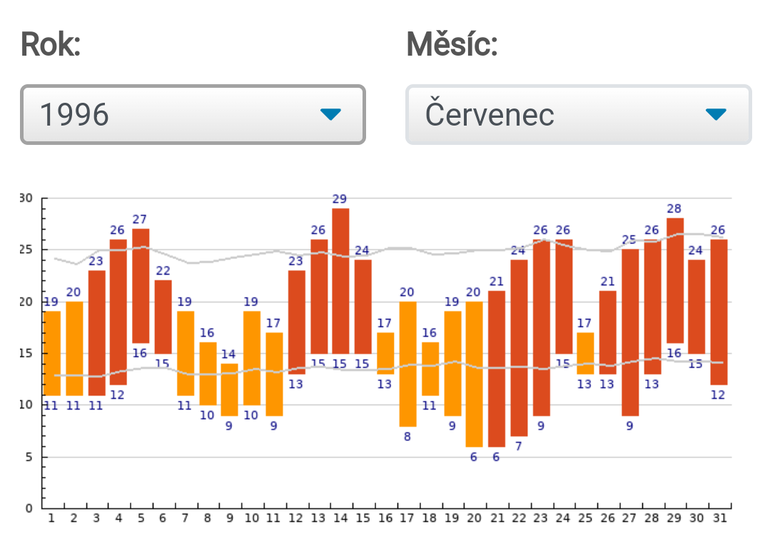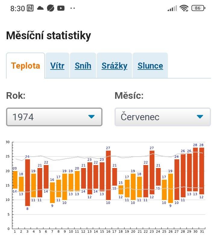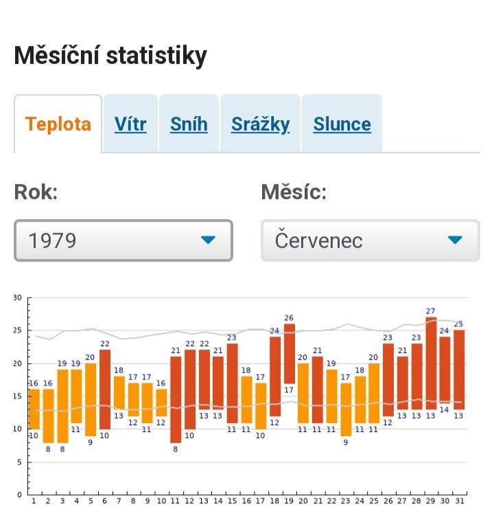 Přesto lidé v mém okolí skuhraji, že letos toho tepla moc nebylo, slunce moc nesvítilo. Ze sedmdesátek by se jim zatočila hlava. Když jim tyto grafy ukážu, jak studená léta dřív byla, tak nevěří.