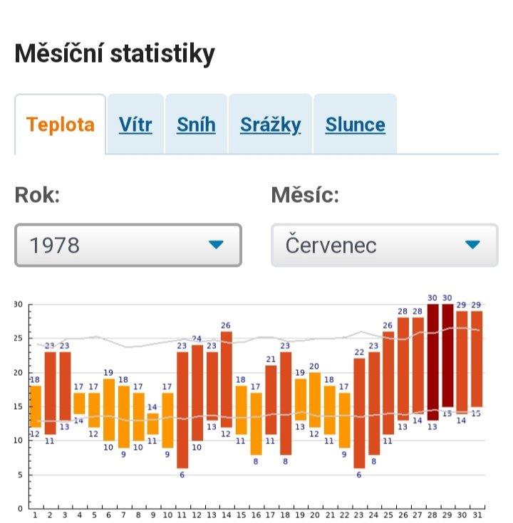 Jo ty července bych zažít nechtěl, to jsem jako hodně uživatelů nebyl ani na světě Ale pak ty srpny ve Vsetíně byly vesměs lepší jako tvé zmiňované roky 74 (5 tropických dní+8 letních) nebo 79 (jeden trop a 10 letních dní), jen léto 78 bylo celkově napendrek i s červnem.. jako stát se může všelicos, nikdy neříkej nikdy, že nazažijem, ikdyž ta pravděpodobnost v tomto století zdá se je malá, ale já mám spíš strach z opačného extrému- a to arktické dny, to bylo naposledy tady v únoru 2012 šest dní a já měl toho plné kecky. Když se podíváme do minulosti tak ty vlny byly delší a silnější a myslím, kdyby to nastalo tak nejsme dobře připravení, oni to v 85 zvládli taktak a dnes by se lidi bez energie-internetu při blackoutu na víc dní asi totálně zhroutili