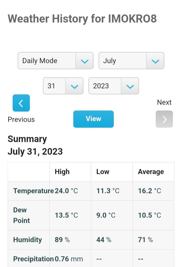 Dle mého subjektivního názoru je letošní léto zde mírně teplejší, než je pro tuto oblast obvyklé. Od půlky června až na výjimky jsou max. denní teploty od 20 do 31 stupňů. Byla řada letních dnů a několik tropických.