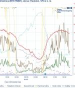 Tady ještě můžu přidat, jak to vypadalo dnes v noci, na jihu JM, na stanicích ČHMÚ, v hlavní pěstitelský oblasti. První hodnota min. přízemní teplota, druhá min teplota ve 2m