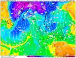 V Alžírsku je také extrémě podprůměrná teplota v 850 hPa, na severu odchylka od normálu až -12 °C. Důvodem je níže ne Středomoří. Mimochodem tlaková níže ve Středomoří tam přinese srážky a bouřky.