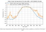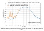 Jsou tam vidět značné odchylky od průměru teplot v minulosti, takže to asi souvisí i s tím rozsahem ledu, ve své podstatě se dosahuje maxima teplot o pár dní dříve a maxima se opouštějí o opět asi deset, čtrnáct dní později.. nevypadá to na první pohled významně, ale vzhledem k tomu, že ta maxima jsou dosahována během léta na cca dvaapůl měsíce, tak už to procentuálně něco udělá, plus tedy vyšší teploty takřka po celý sledovaný rok..