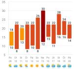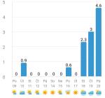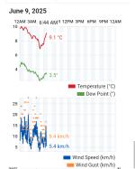 Zatím pohodinda, oblačno, úplné bezvětří a tmin +7, dává se tam na další dny 7 až 4 °C, inpoč. má +9 takže víme jak to skončí. Tahle zima po ránu ničemu nesvědčí a má být přes den do pátku větrno. Pak si tipnu houpačku, dva dny to možná někam vyletí a pak zas dolu.
