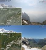 Kdo se v těchto dnech vydal za výhledy do Alp, tak si je příliš neužije. Jsou zde vysoké koncentrace kouře z Kanady, které výrazně limitují dohlednost. Viz srovnání záběrů z kamery ve Švýcarském Grindelwaldu ze včerejška a z 30. května. Patrný je zákal i na satelitním snímku.
