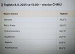 Tak po chladném ránu, nakonec odpoledne solidní teplo. Místy zde v okolí maxima až okolo 28°C. Zítra tedy i ten TD, zřejmě tady padne. No a jak to zatím vypadá, od 1. srpna do dneška včetně, s průměrnými maximy, na vybraných stanicích ČHMÚ, viz tabulka