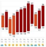Jo, tak jsem ty Kuchařovice trefil dobře. Tam občas umí dobře co se týče maxim, takže dneska trio maxim Kuchařovice, Doksany a Kopisty. Pěkné. Zítra JM bude lehce chladnější, takže tipuji maximum v Polabí, a pak v nížinách na SZ, naopak v neděli tropické dny jen na jihu Moravy a to až 33°C, pravděpodobně i více (aktuálně IDE vidí až 34°C).