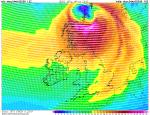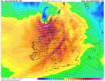 Nesilnější vítr v 850 hPa a 925 hPa v bouři Floris byl dosažen při západním pobřeží Skotska, kde jsou hory, v 10 UTC přibližně. V 700 hPa dosáhl vítr maxima až při východním pobřeží Skotska k 13 UTC. Nicméně k 09-10 UTC byly dosaženy podle GFS nejsilnější nrazy větru v 10 m i nejsilnější tlakový gradient. Tou dobou právě bouře Floris udeřila na západní pobřeží Skotska. A tak tedy GFS 04.08.2025 06 UTC +4 hod na 10 UTC.