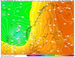 Nejnižší tlak vzduchu někam k 972 hPa byl dosažen mezi Skotskem a jiho-západem Norska 04.08.2025 okolo 972 hPa. Po té se níže dostala k pobřeží Norska a ještě v průběhu noci se střed níže udržoval na hodnotách 973-974 hPa poblíž jiho-západu Norska. GFS 04.08.2025 18 UTC (GFS18+0) v době dosažení nejnižšího tlaku vzduchu.