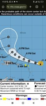 No jo měl by zasáhnout ty Karibské ostrovy ale naštěstí ne hlavní části. Jinak Erin už by za chvíli měl dozrát do 3 kategorie a otočit se na sever a severovýchod.