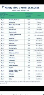 TomasMost 55 # 26.10.2025, 19:06 Koukám,za odpoledne Kopisty 2,2 mm a skoro stejně Nová Ves v Horách (725m) 2,3mm srážek. ČHMÚ - nárazy větru