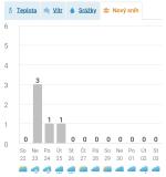Ve výšce je silnější proudění od SZ, proto ty vločky nedopadají na zem i při odrazech, ale jsou unášeny dál. Navíc i suchá vrstva a odpařují se. Tady jsem zaznamenal asi tak jednu vločku, to vše.