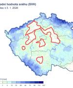 Je v tom samozřejmě i trocha nadhledu a ironie Na druhou stranu, proč si krátce nepřipomenout, co se dalo zažít ke konci devadesátek, nebo v osmdesátkách. Tady se chlapci klepou na pár cm sněhu a lámou rekordy, jestli jsou 2 nebo 4 cm, na jedno ráno. Takže proč jim nedopřát, nějaký ten arktický den, sněhu 25 cm a mráz v noci pod -20°C. Fungovali jsme v tom celkem normálně. Za mně pozitivum následujících dní je: aspoň nějaké drobné srážky v ÚK. Jinak tady mapka zásob vody ve sněhu, začátkem tohoto týdne. Prakticky bez zásob je většina nižších poloh v ÚK, trošku je jen na Chomutovsku a Děčínsku