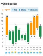 Teď mi ukazuje telefon že má sněžit ... Zítra to bude zase jinak ...