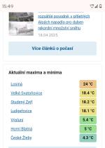 Podle Ogimet SYNOP dnes 14.04.2025 Txx v ČR 11509 Doksany +24.3. Podle map na chmi.cz ze všech stanic CHMI z hodinových dat nejvyšší teplota v 17:00 SELC Doksany +24.1 °C. A tak zaznamenané letní dny na soukromých stanicích dne 14.04.2025 lze brát na pováženou.